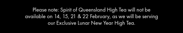 Spirit of Queensland High Tea is available on Saturdays & Sundays